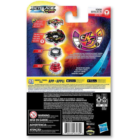 Venom Devolos D5 Vanguard Bullet I-H ist ein ausgewogener Beyblade Burst Rise Kreisel. Er dreht sich im Uhrzeigersinn und gehört Delta Zakuro in der Serie. Er ist der ideale Kreisel, um dein Abenteuer zu beginnen und deine zukünftigen Blader-Kämpfe zu gewinnen!